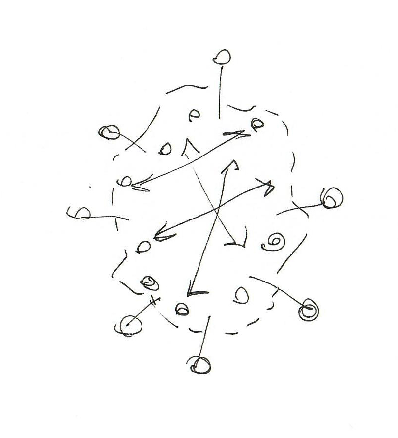 The virtual organisation first appeared in the 1990s and is effectively a loose collection of individuals brought together through the use of technology. Individuals may be dispersed in terms of space, place and time. Virtual organisations thrive when there is a clear common purpose and goals are well formed. It is also not uncommon for there still to be face to face connections but this is usually in the form of particular quarterly or annual events, awaydays or conferences. The virtual organisation it can also consist of a number of different organisations coming together to form a larger virtual entity.